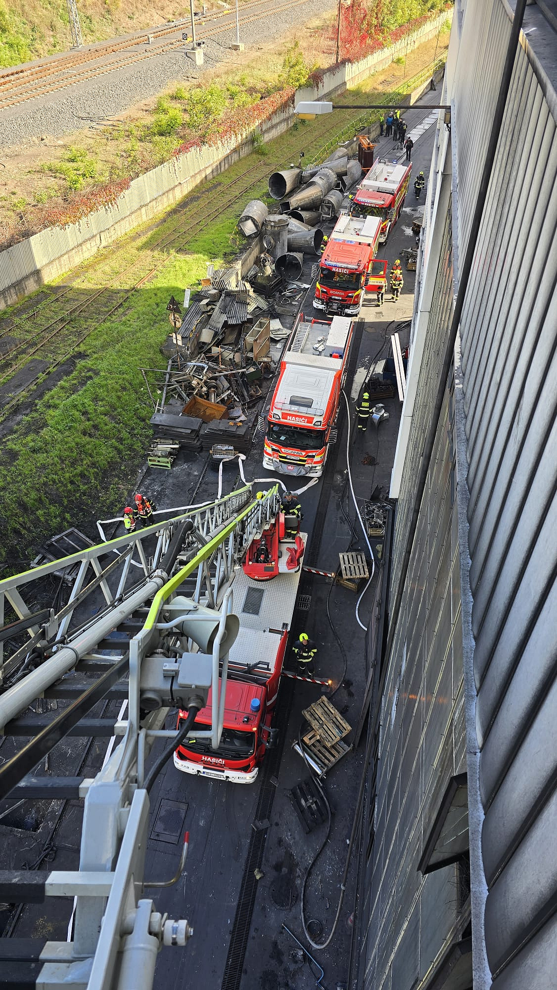 Pražští hasiči zasahují u požáru v nepoužívaném areálu MITAS na Zahradním městě. Hořet začalo při demontáži výrobní technologie. Hasiči z budovy evakuovali pět osob, dvě předali záchranářům, protože se nadýchaly kouře.