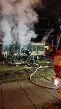 V noci na dnešek zasahovali královehradečtí hasiči u požáru odstaveného vagónu na Pražském Předměstí. Hasiči vyklidili uvnitř uskladněný materiál a rozebírali střechu.