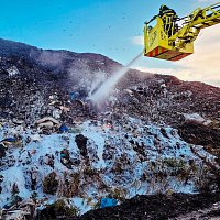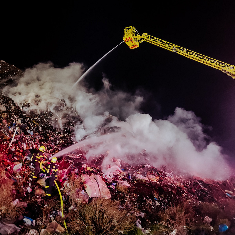 Pět jednotek hasičů likvidovalo ranní požár skládky v Horní Suché na Karvinsku