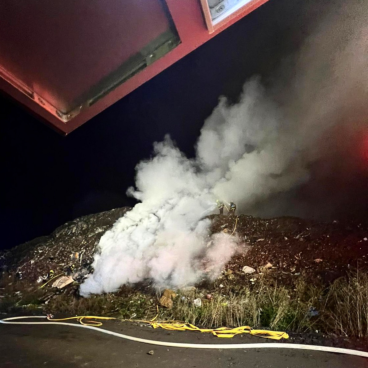 Pět jednotek hasičů likvidovalo ranní požár skládky v Horní Suché na Karvinsku