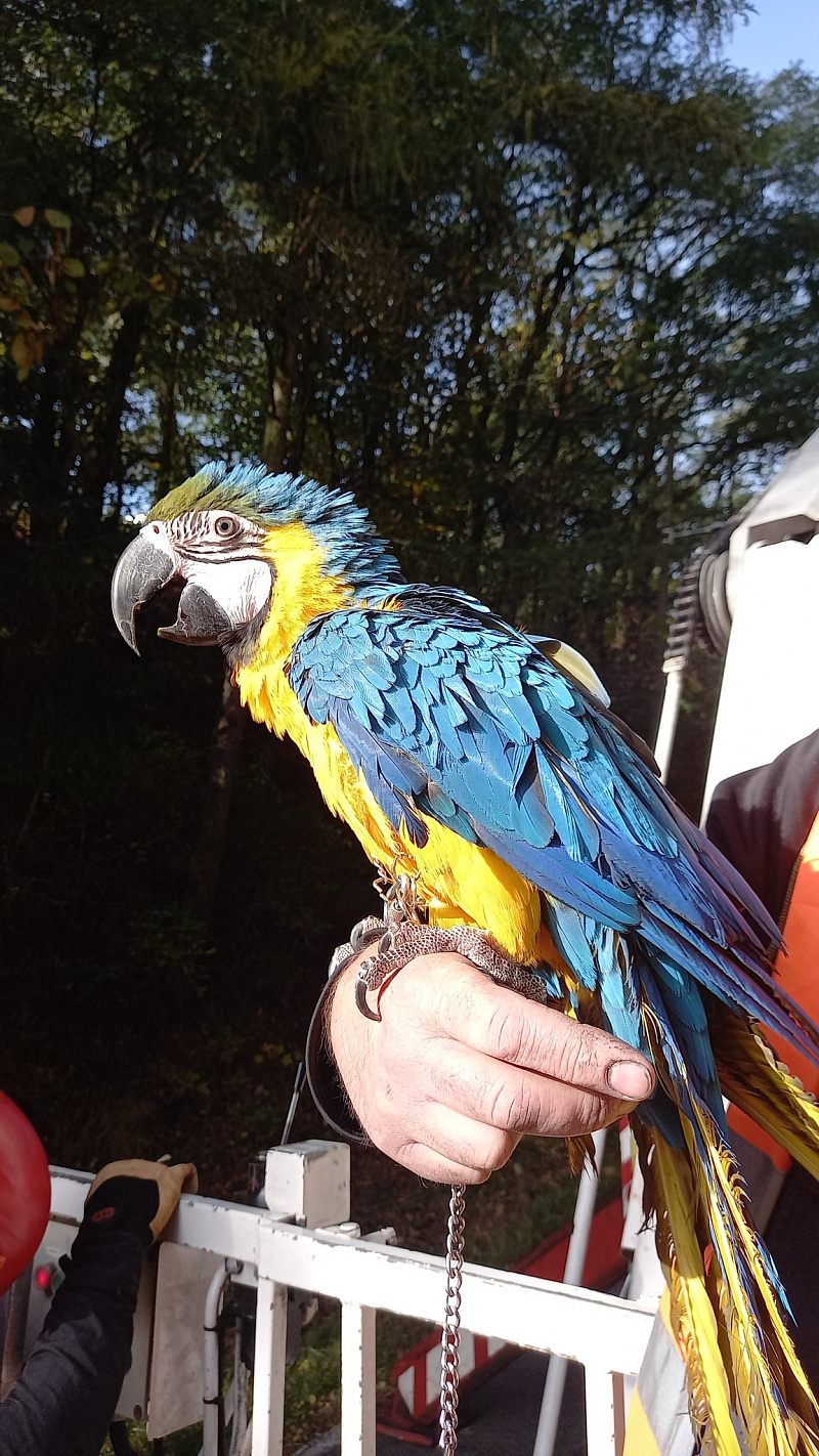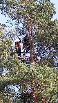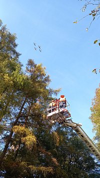 Profesionální jednotka z centrální stanice Trutnov zachránila papouška, který uletěl majiteli a ve výšce cca 20 metrů se zamotal za své vodítko na stromě.