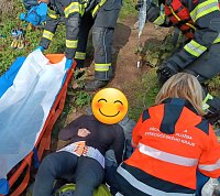 Ve skalách na Příbramsku spadla žena, operační důstojník povolal lezce, člun i vrtulník