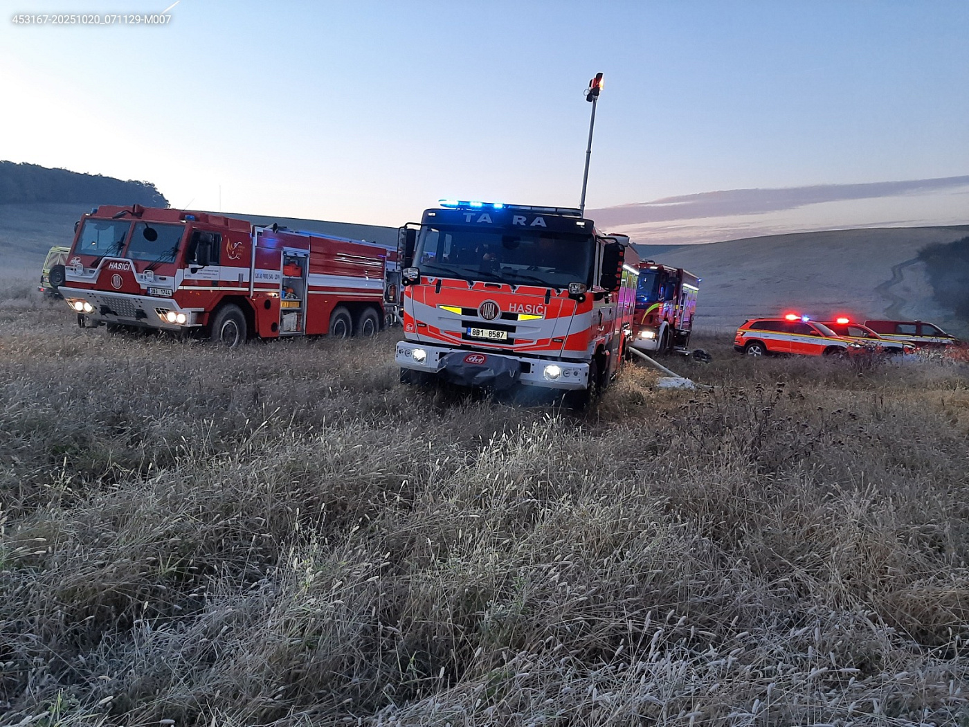 Místo události bylo v obtížně přístupném terénu. Hasiči dohašují a hledají skrytá ohniska požáru. Na místě je hasičský vyšetřovatel.