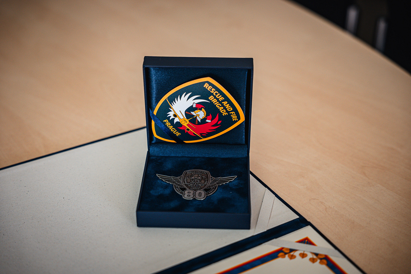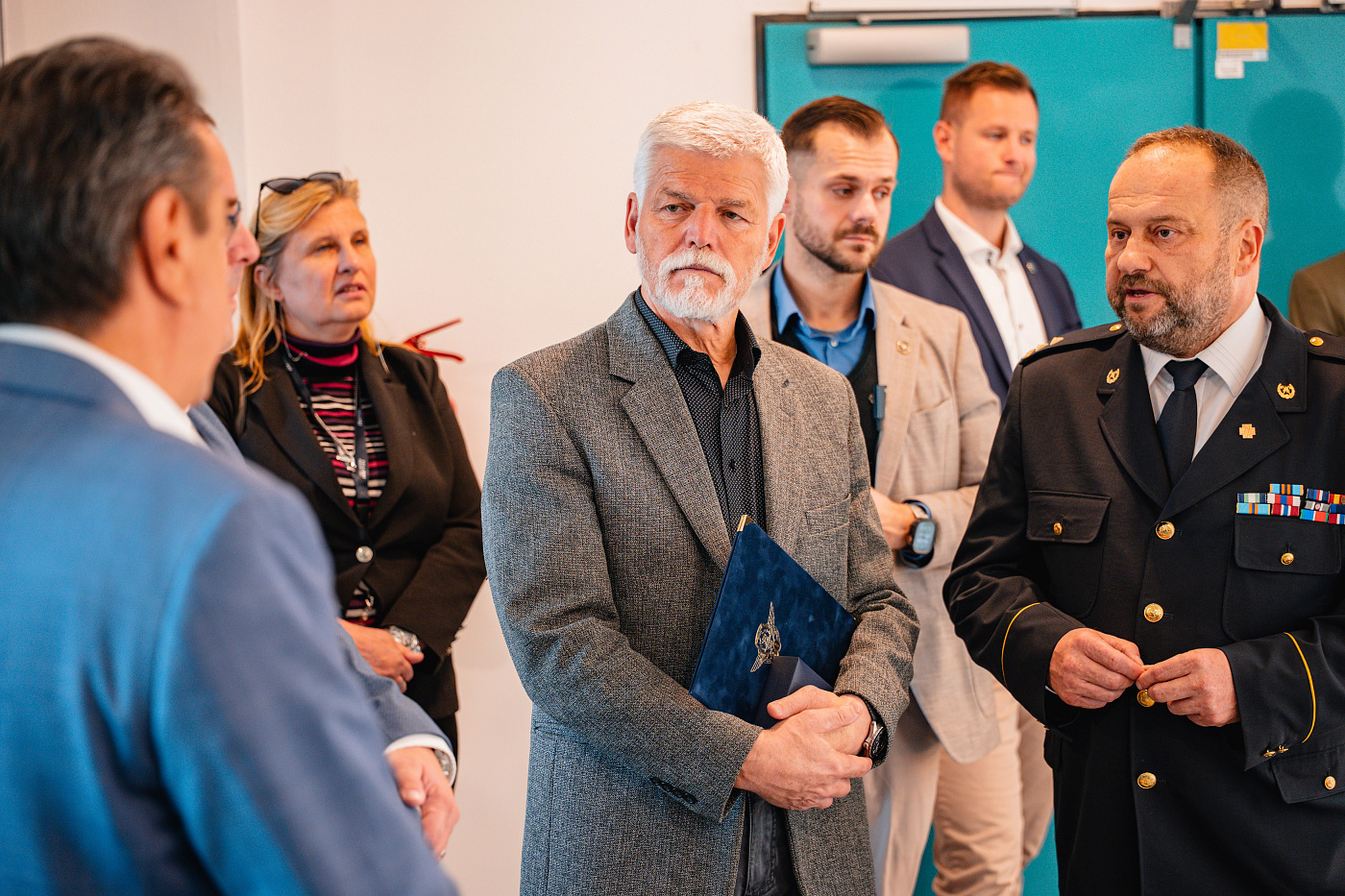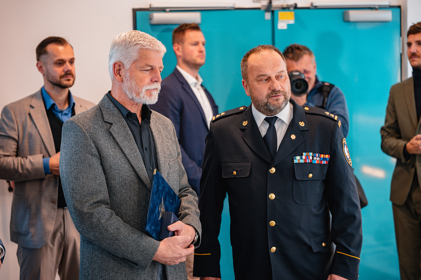 Prezidenta přivítal ředitel letištních hasičů Pavel Hošek, který mu předal pamětní plaketu k osmdesátému výročí založení jednotky. Jako další symbolický dar obdržel Petr Pavel speciálně ušitý zásahový kabát od české firmy GoodPro, která se specializuje na výrobu ochranných oděvů pro záchranné složky.