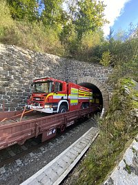 Jednotka z Havlíčkova Brodu zasahovala v Podhradském tunelu nedaleko Ledče nad Sázavou. Úkolem bylo pročištění kanalizačních propustí, které odvádějí vodu z prostoru pod tunelem.