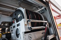 Cisterna má také vodní trysky na ochranu podvozku a zadní trysky na vodní mlhu pro využití v ulicích města ve velkých vedrech.