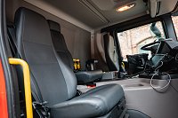 Kabina Scanie je třímístná – řidič a dva členové posádky.