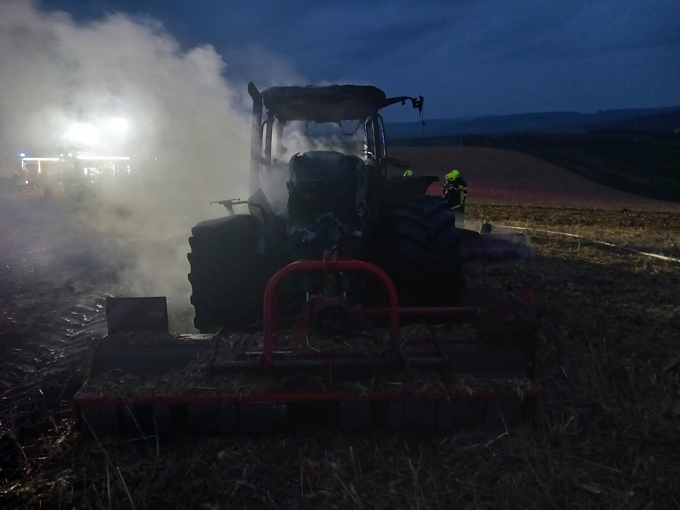 Do obce Archlebov na Hodonínsku vyjeli pár minut po půl šesté profesionální hasiči ze stanic Hodonín a Kyjov společně s jednotkami SDH obcí Archlebov, Žarošice a Ždánice k požáru traktoru.