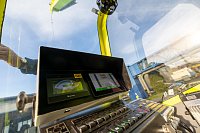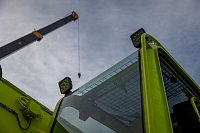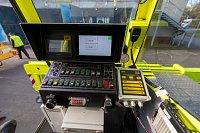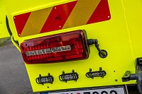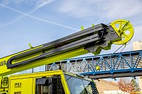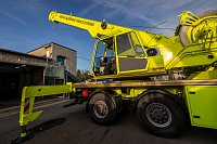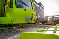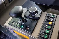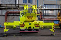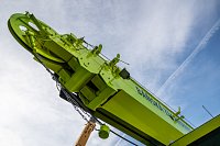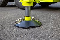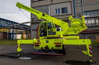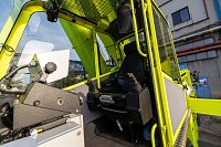 Čtveřice stabilizačních podpěr dokáže stroj vyrovnat v terénu o sklonu až 3 °, při rozložení jsou široké 5 640 mm.