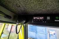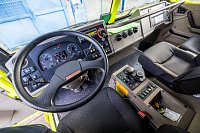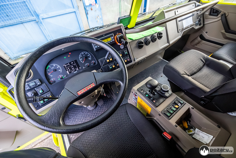 Kabina je dvoudveřová, třímístná, za prostředním sedadlem najdeme trojici ručních radiostanic v dobíjecích úchytech.