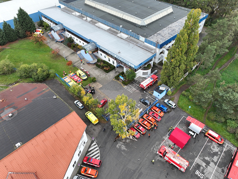 Složky IZS procvičovaly na kralupském zimním stadionu činnost po úniku čpavku