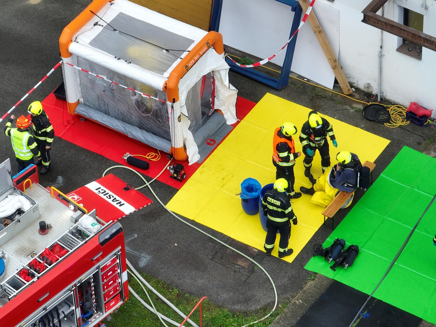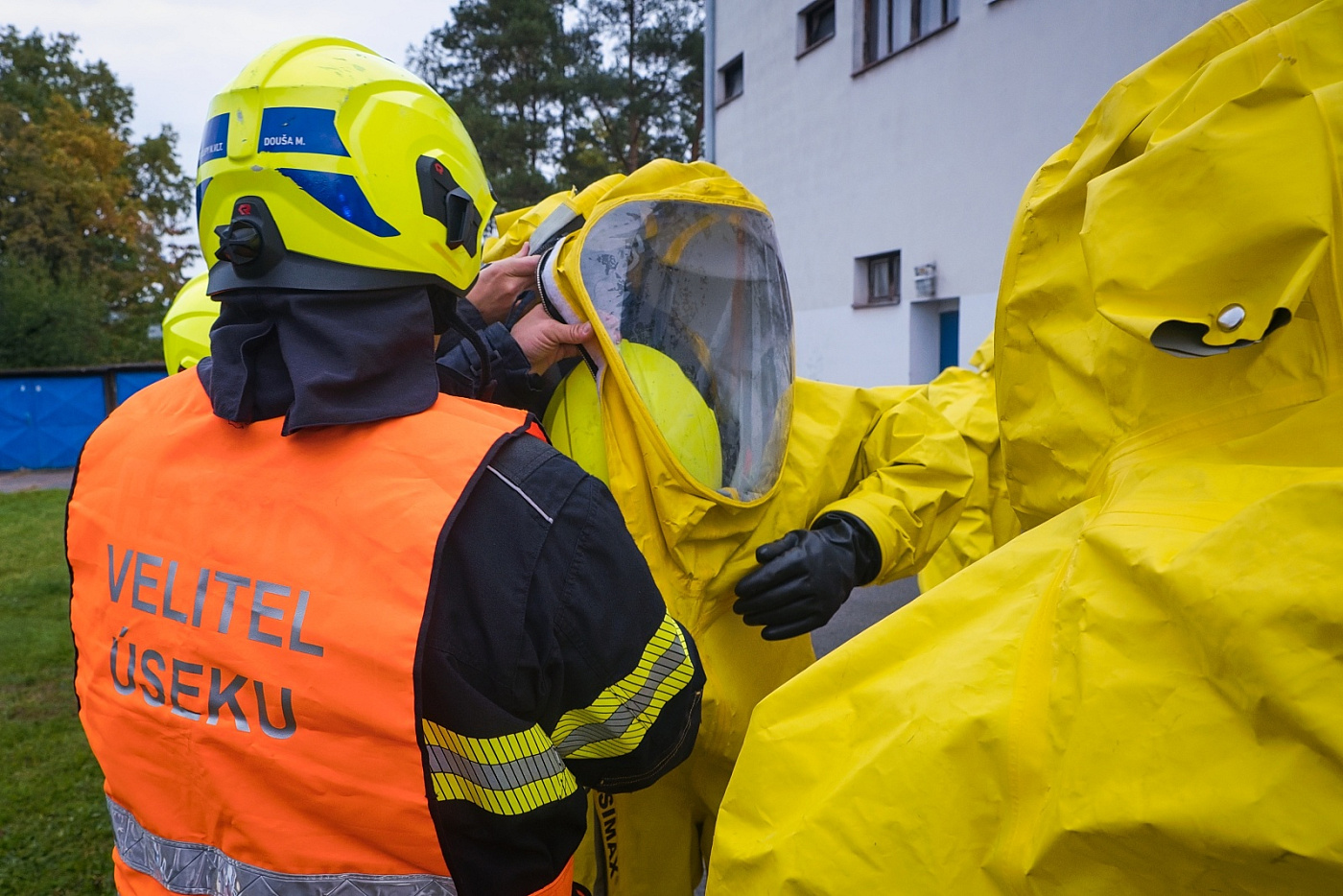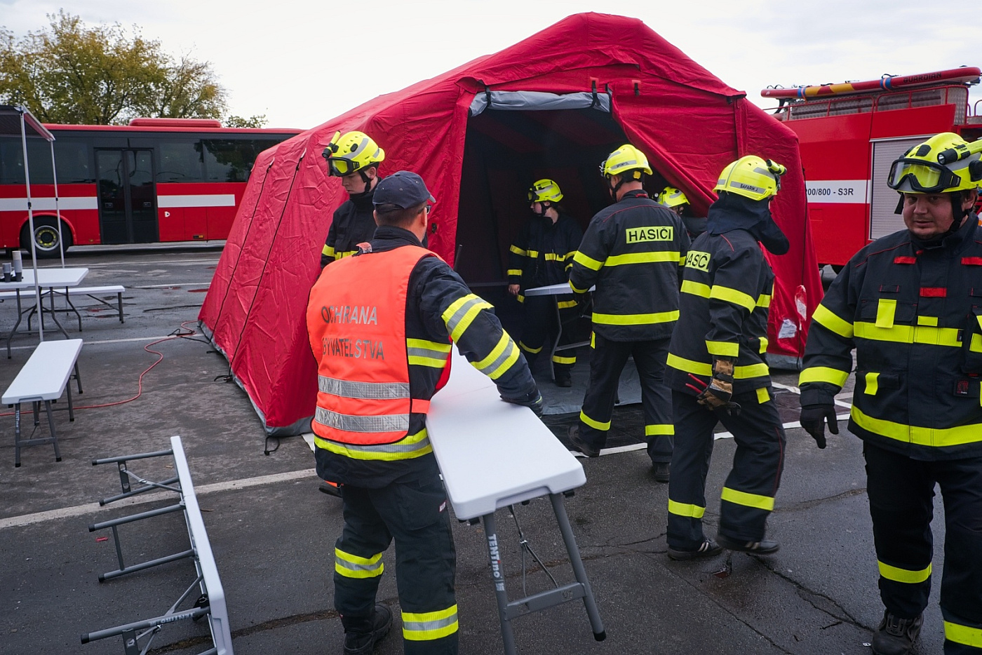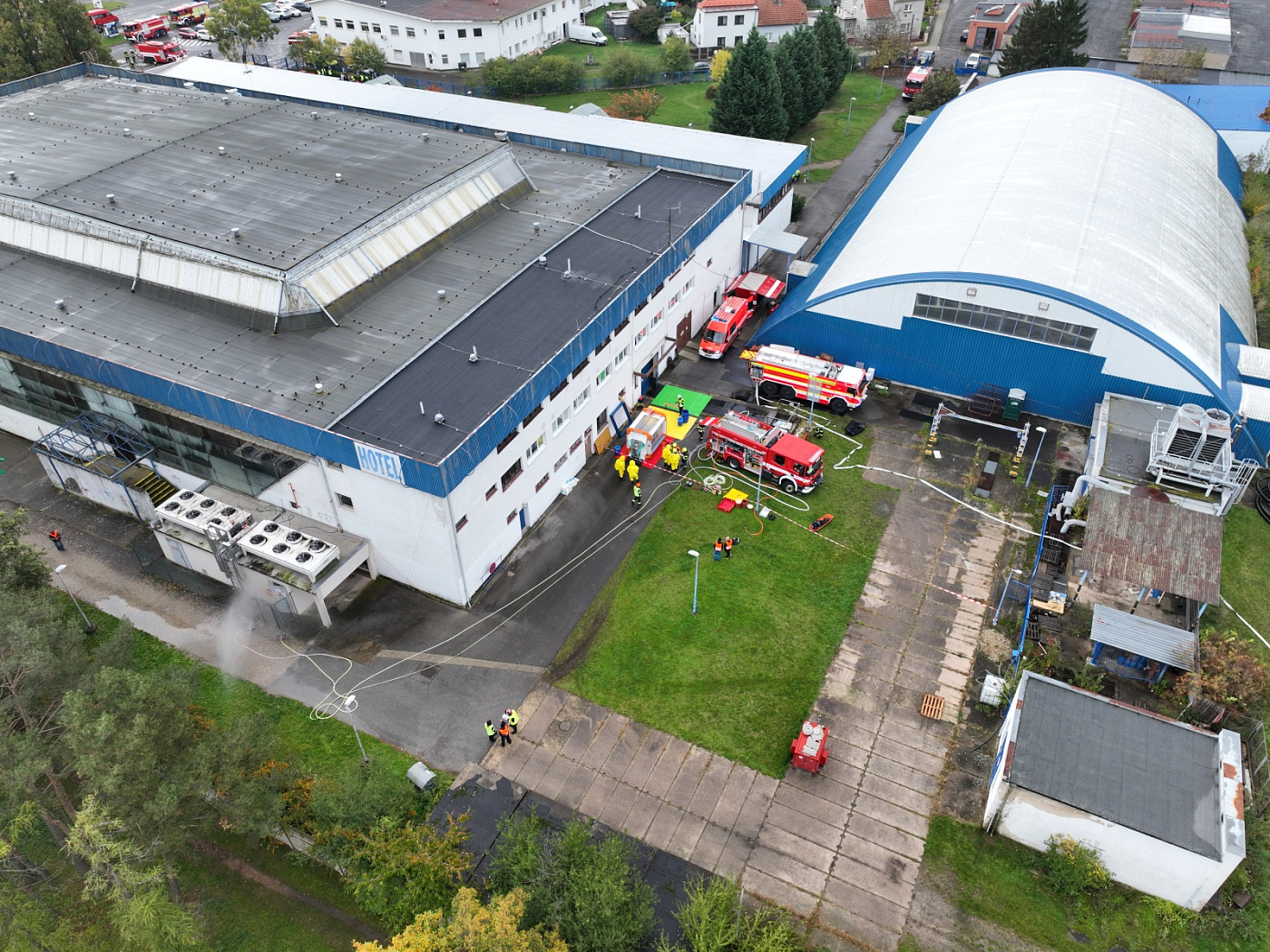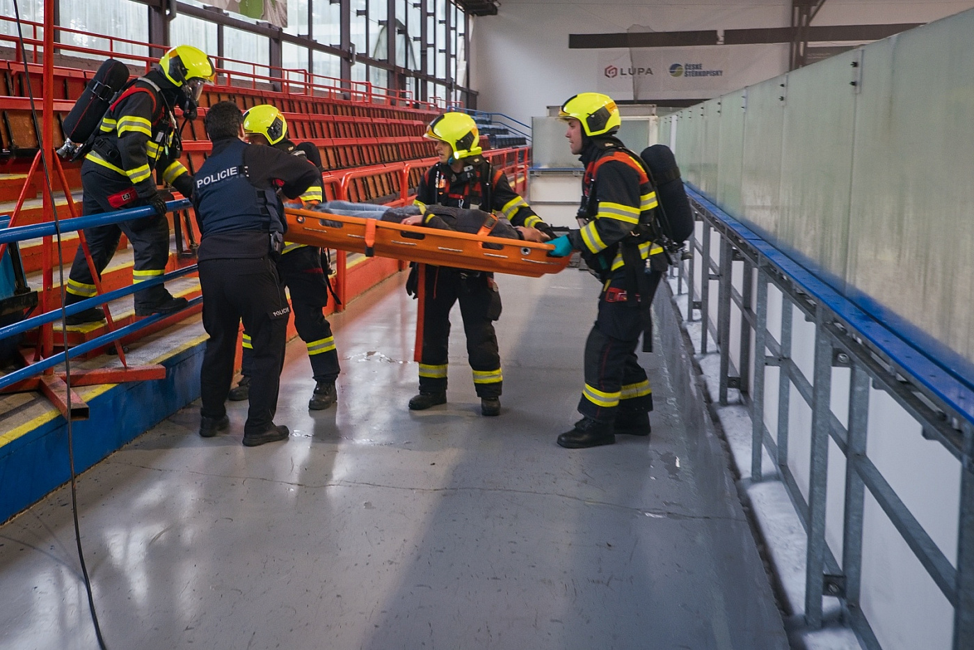 Složky IZS procvičovaly na kralupském zimním stadionu činnost po úniku čpavku