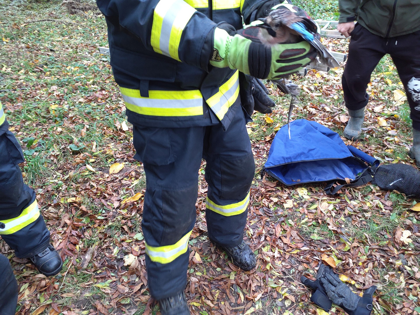 Hasiči u obce Nové Mlýny na Břeclavsku zachránili sojku zamotanou do pletiva