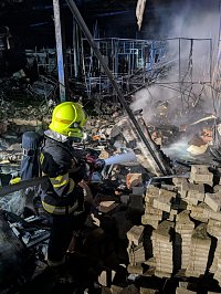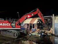 Druhý den v Bohušovicích: hala s pyrotechnikou už nehoří. Trosky rozebírá rypadlo záchranného útvaru