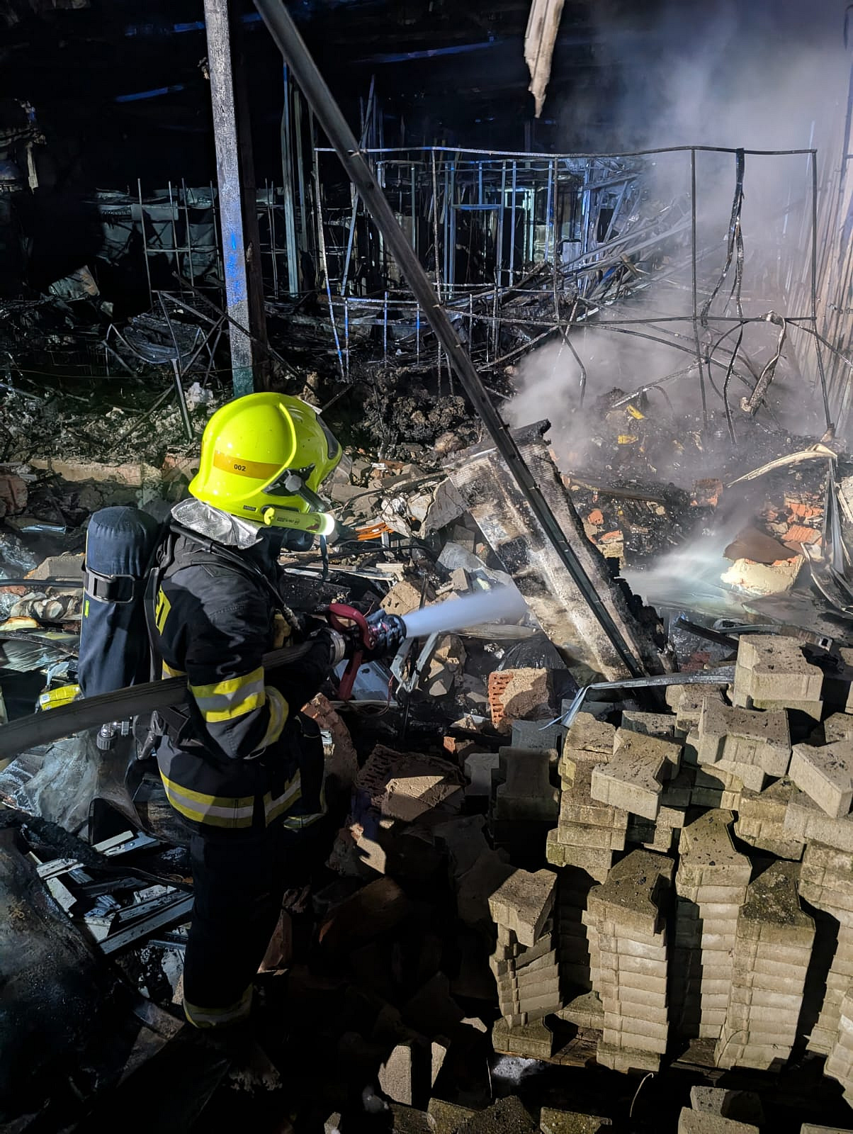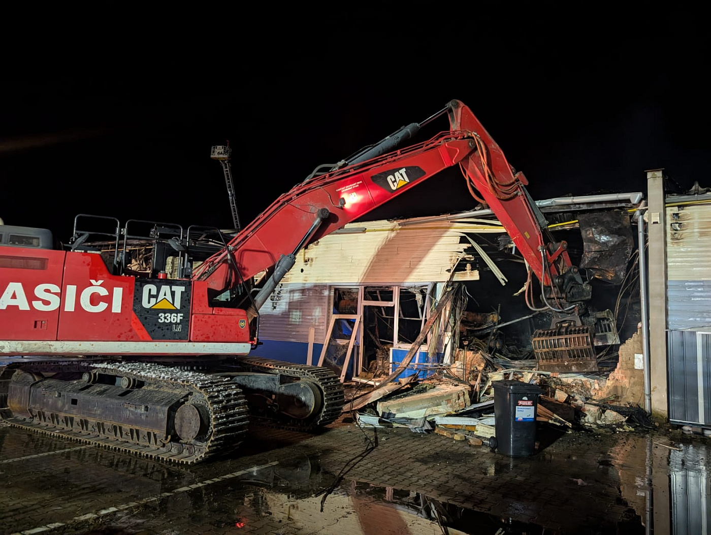 Ve 3:06 hodin se začala rozebírat konstrukce haly pomocí speciální techniky. Hasiči zároveň dohašovali skrytá ohniska. Na místo byl přivolán statik, který posoudil stav objektu a rozhoduje o dalším postupu, včetně možnosti stržení haly z důvodu narušené statiky.