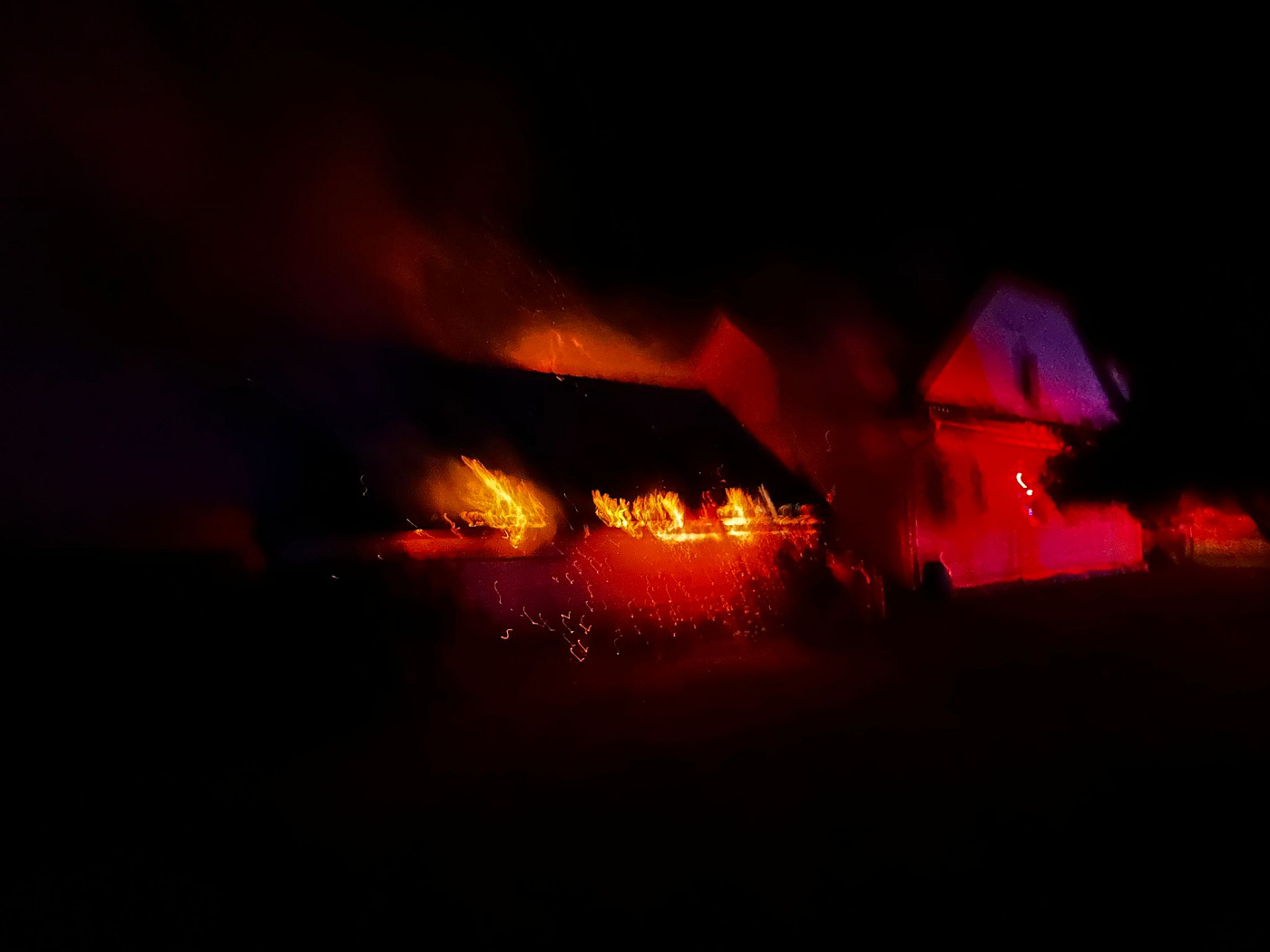 Při příjezdu první jednotky byla stodola, ve které bylo uskladněno seno požárem již zcela zasažena. Hasičům se včasným zásahem podařilo uchránit vedle stojící dům. Na likvidaci požáru bylo nasazeno několik vodních proudů. Krátce před jednadvacátou hodinu byla provedena lokalizace požáru.