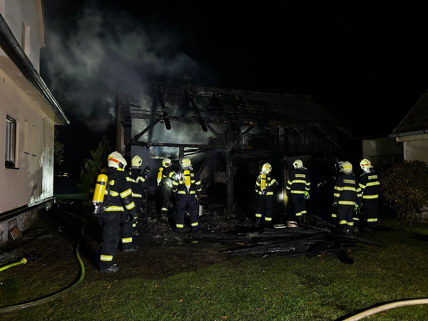 Rozebrání konstrukcí a dohašování jednotkám zabralo další hodinu a půl. Požářiště bylo majiteli předáno po půl jedenácté. Výši škody a příčinu vzniku požáru nyní budou hasiči zjišťovat.