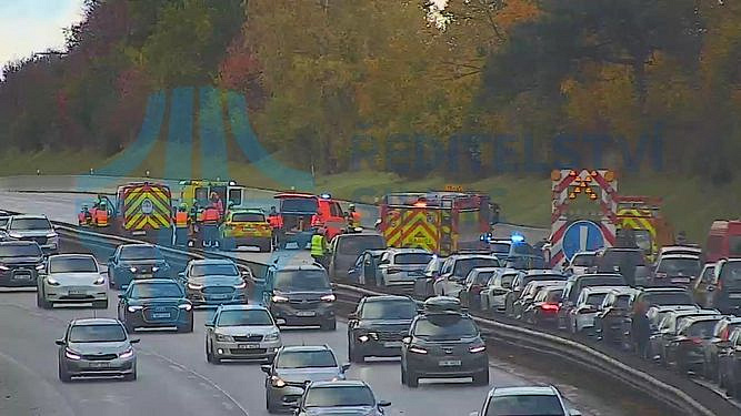 Profesionální hasiči ze stanice Říčany zasahují společně s jednotkou SDH obce Senohraby na 18. kilometru dálnice D1 u hromadné dopravní nehody několika osobních vozidel. Z důvodu zásahu je dálnice ve směru do Prahy zcela uzavřena. Jedna osoba byla letecky transportována do nemocnice.