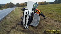 Na silnici č. 605 u obce Škviřín havaroval osobní automobil, skončil mimo komunikaci. Na místě jedna osoba v šoku a v péči ZZS. Hasiči zajistili protipožární opatření a únik provozních kapalin.