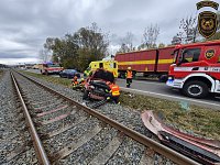 Při příjezdu jednotek, byla zraněná osoba v péči posádky zdravotnické záchranné služby. Protože vozidlo zasahovalo do kolejiště byl zastaven provoz vlaků na trati.