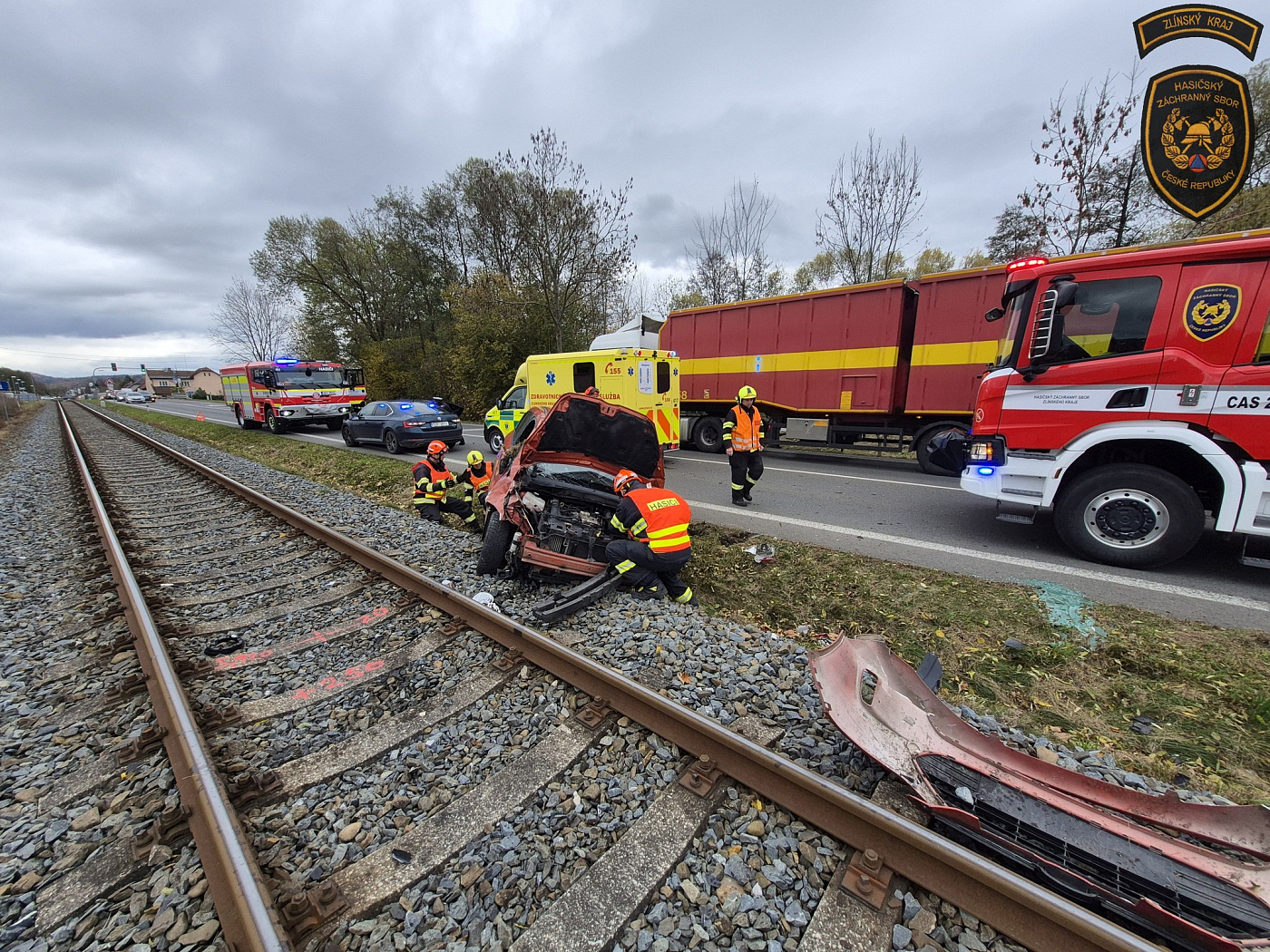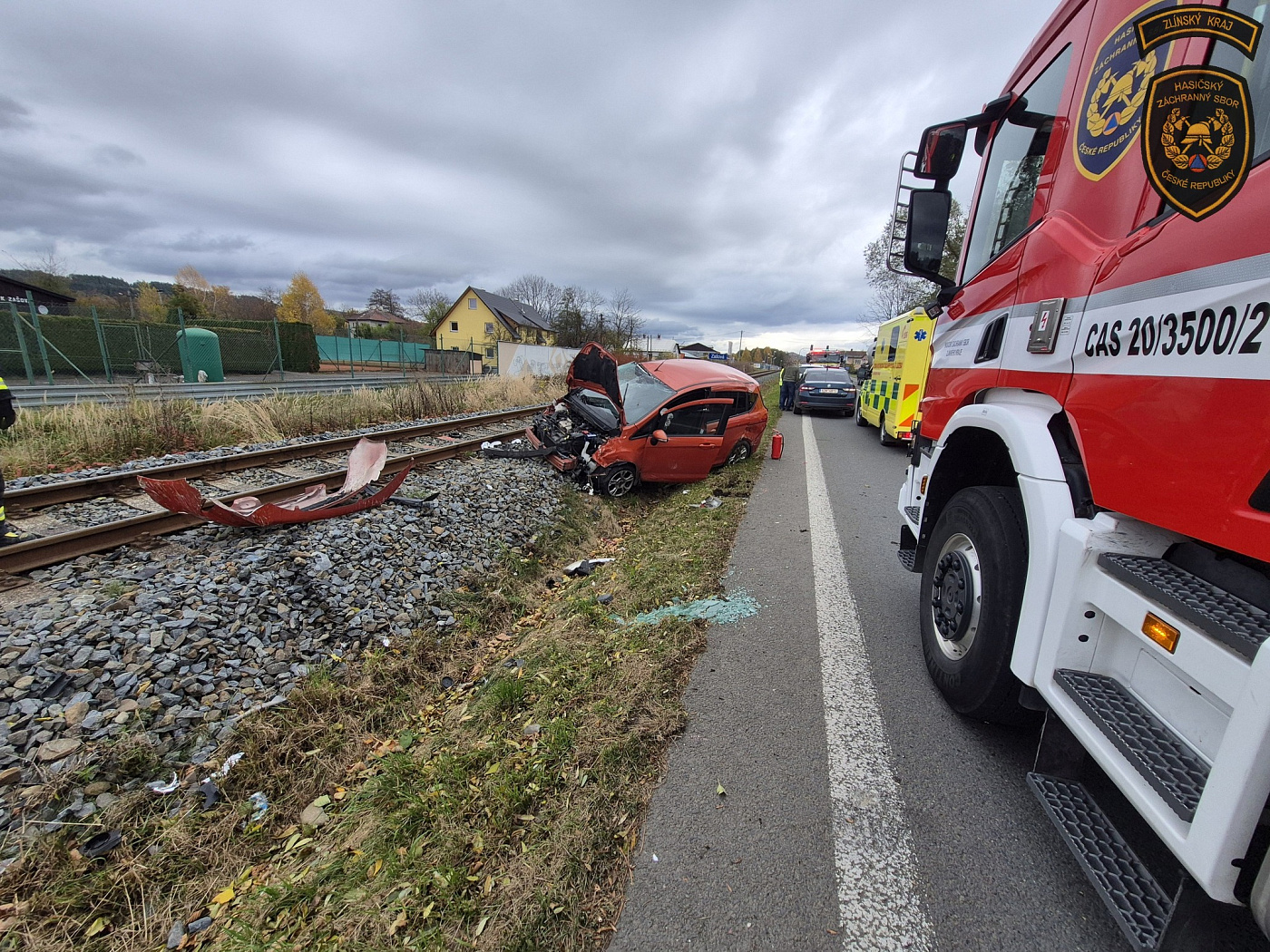 V Zašové havaroval osobní automobil, skončil v kolejišti