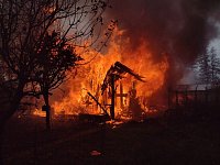 Výbuch plynové lahve s následným požárem chaty v zahrádkářské kolonii v Ostrově na Karlovarsku řeší tři jednotky hasičů.