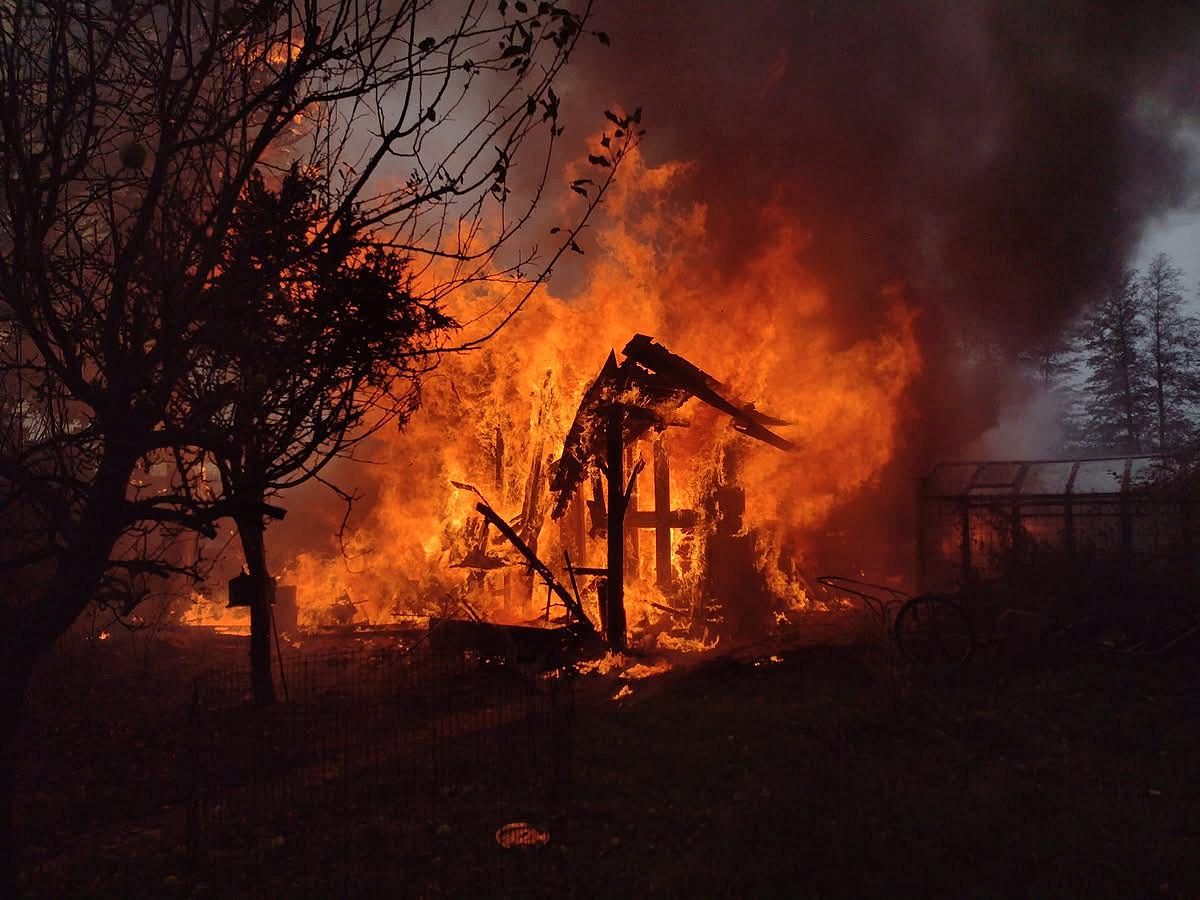 Výbuch plynové lahve s následným požárem chaty v zahrádkářské kolonii v Ostrově na Karlovarsku řeší tři jednotky hasičů.