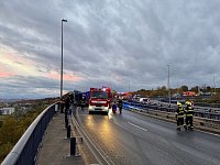 Jednotky ze tří pražských stanic zasahují na ulici Kbelská u dopravní nehody kamionu, který se převrátil na bok. Vozidlo prorazilo ochranné zábradlí a částí vozidla je mimo komunikaci. Hasiči řeší únik provozních kapalin a vozidlo zajistili.