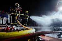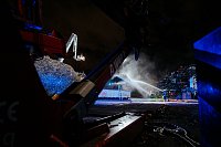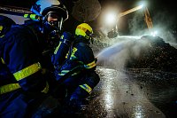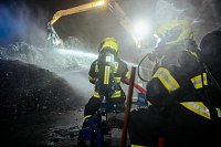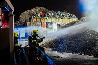 Už při příjezdu jednotek byl vidět hustý černý kouř. Hořel odpad o rozloze přibližně 40 × 40 metrů. K likvidaci požáru byly zřízeny dva bojové úseky a nasazeny vodní proudy ze země i z výškové techniky, těžká technika provozovatele pomáhala s rozebíráním odpadu.