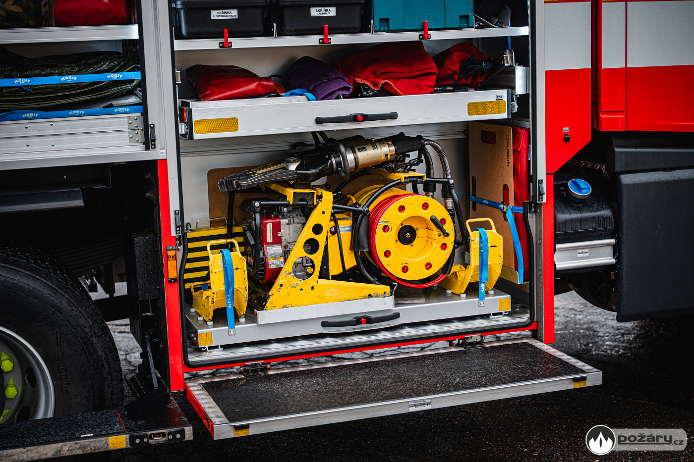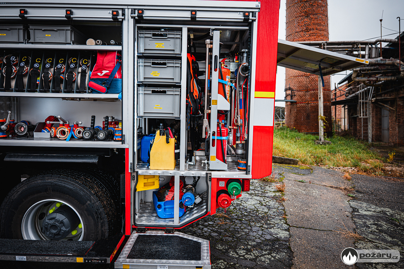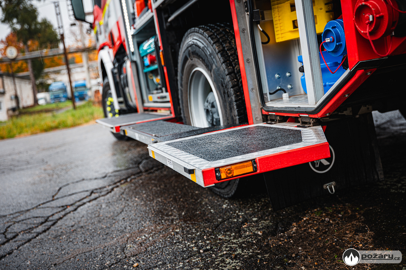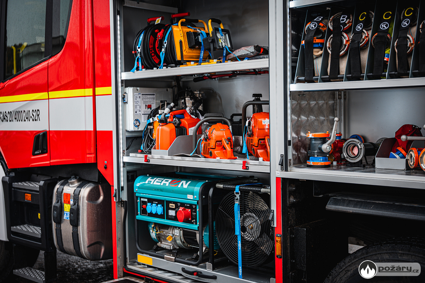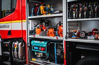 Pod bočními schránami jsou výklopné stupačky. Nádrž na hasivo tvoří jeden celek – pojme 4 000 litrů vody a 240 litrů pěnidla. Čerpací zařízení dosahuje jmenovitého výkonu 2 000 litrů za minutu. Led stavoznaky jsou integrovány do sloupků mezi roletami a ukazují aktuální mnoství hasiva v nádržích.