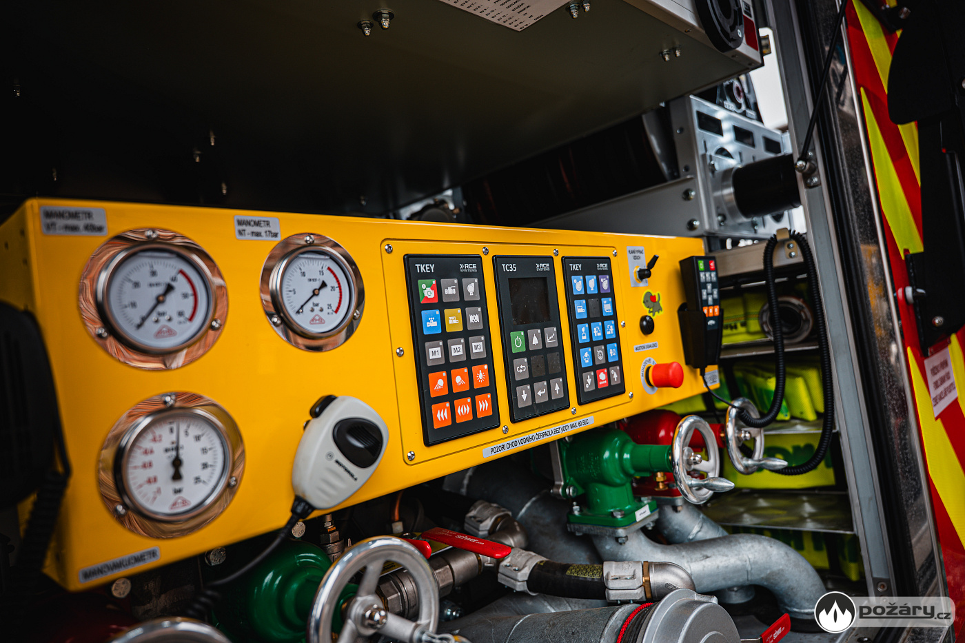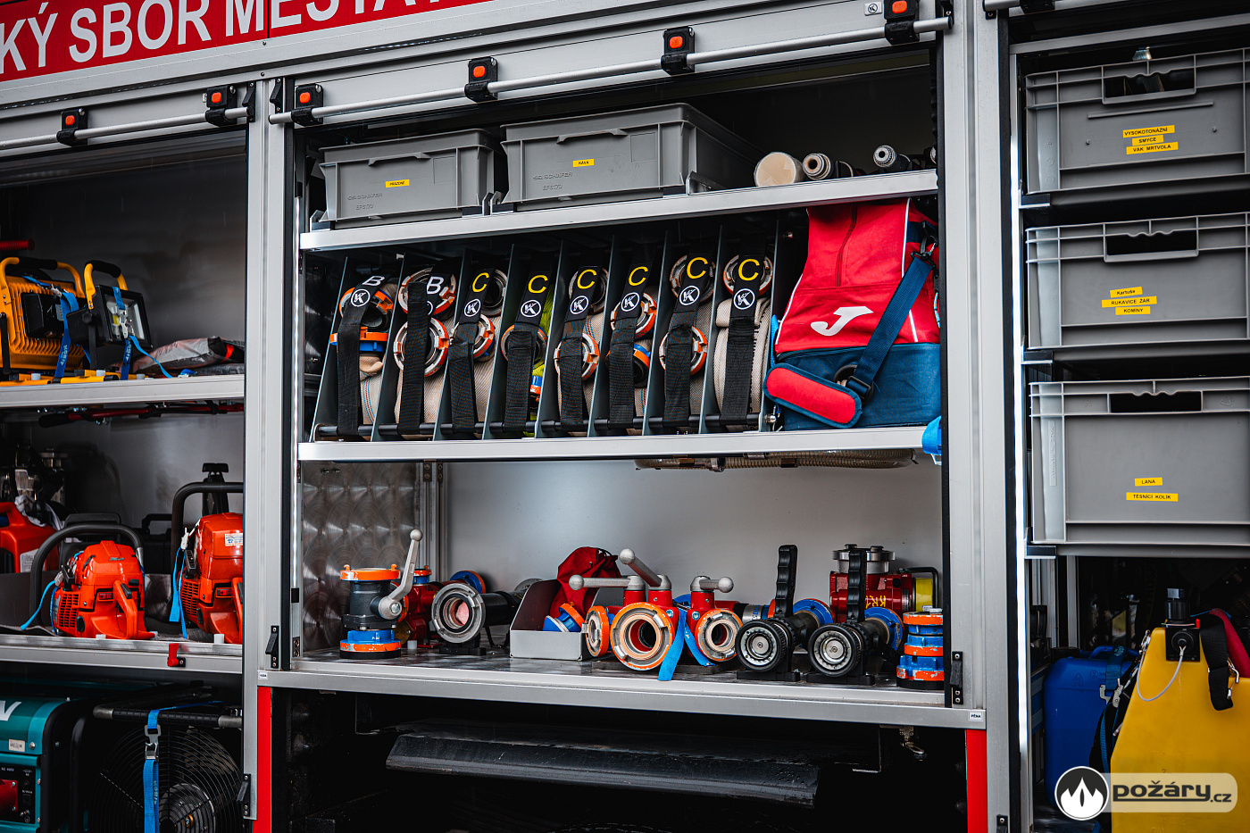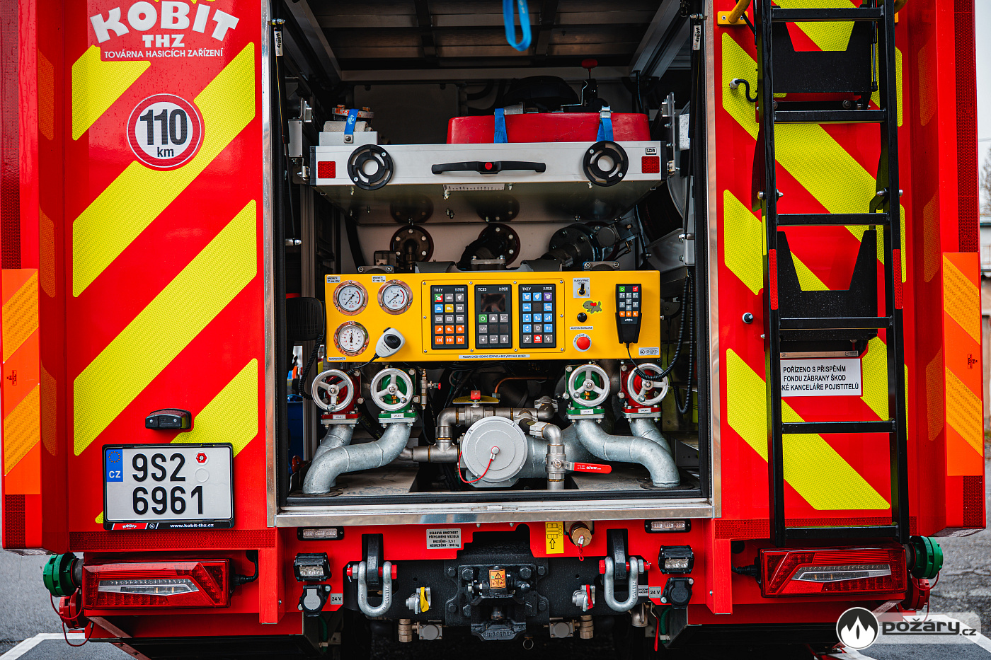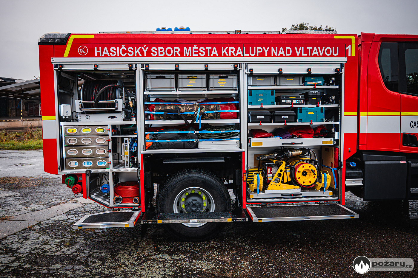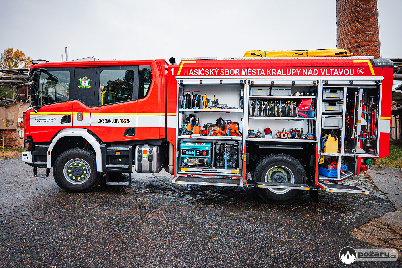 Pod bočními schránami jsou výklopné stupačky. Nádrž na hasivo tvoří jeden celek – pojme 4 000 litrů vody a 240 litrů pěnidla. Čerpací zařízení dosahuje jmenovitého výkonu 2 000 litrů za minutu. Led stavoznaky jsou integrovány do sloupků mezi roletami a ukazují aktuální mnoství hasiva v nádržích.