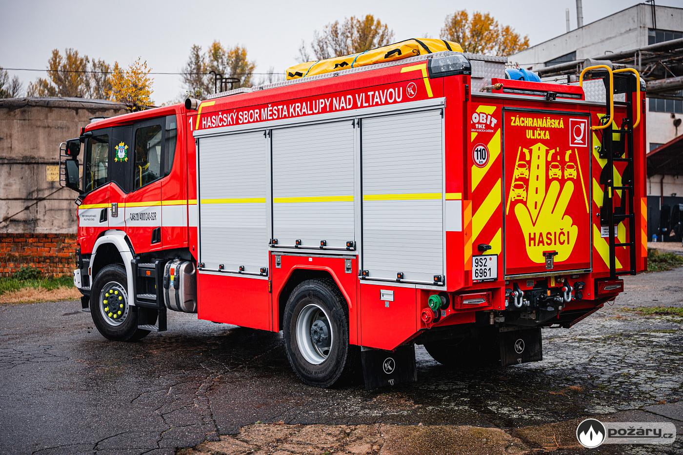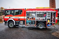 „Malá“ Scania z Kralup vozí na zadku záchranářskou uličku, polep byl levnější než značka na přání