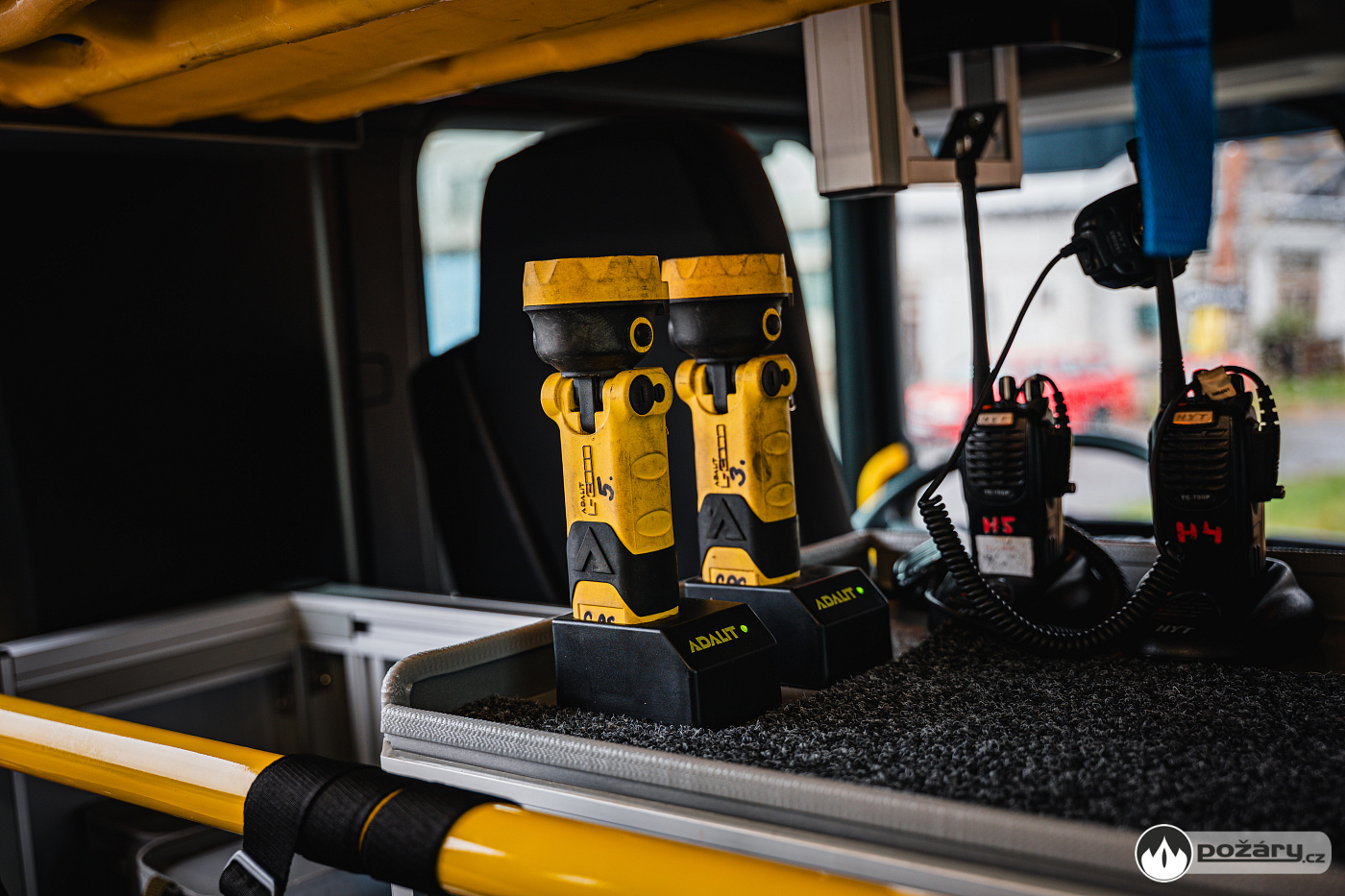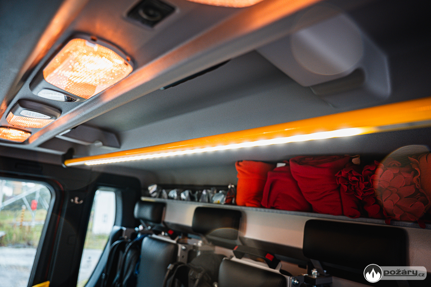 Bezprostřední okolí automobilu osvětlují LED světla v okapnicích na bocích a v zadní části, zásah lze nasvítit pneumaticky výsuvným stožárem s 24V LED světlomety.
