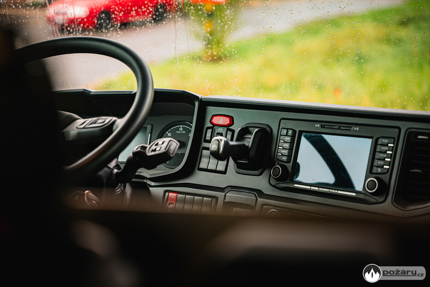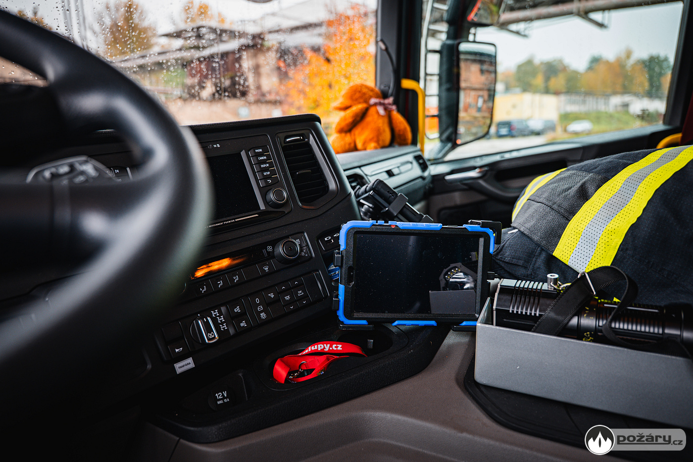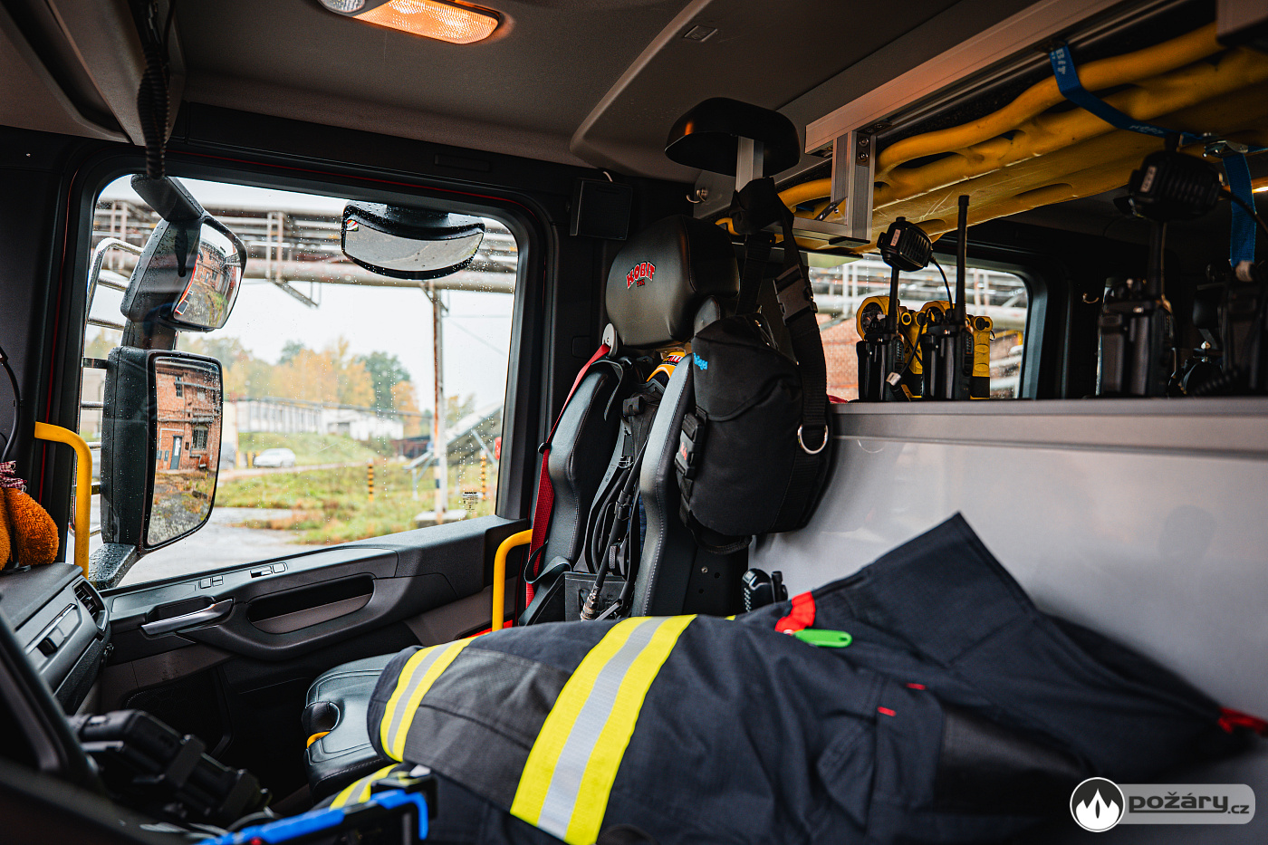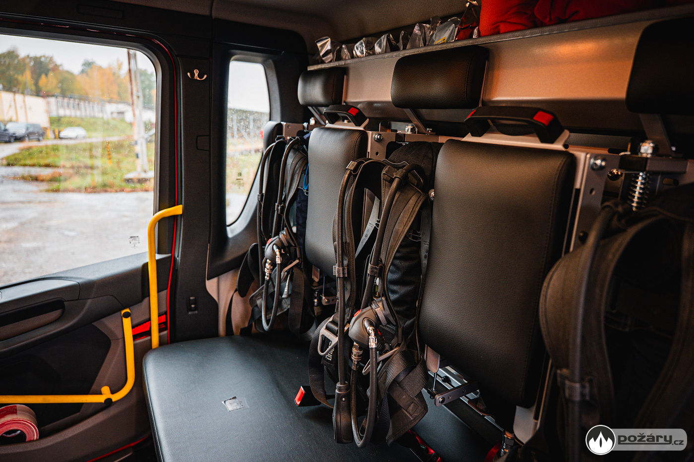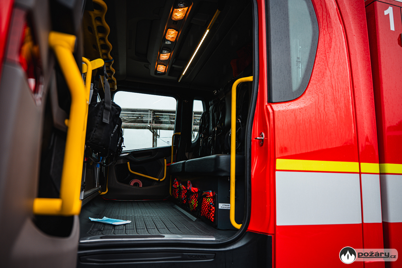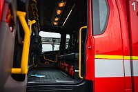 Nechybí řada komfortních prvků, včetně vnitřního osvětlení s proměnnou intenzitou. V dosahu velitele je výjezdový tablet, řidič má ve svém zorném poli tablet pro obsluhu nástavby a displej továrního infotainmentu, do kterého je integrován i výstup ze zadní couvací kamery.