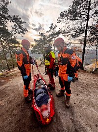 Tři jednotky požární ochrany společně se Zdravotnickou záchrannou službou a Leteckou záchrannou službou ošetřily a transportovaly zraněného člověka ze skalního města v Jetřichovicích na Děčínsku.