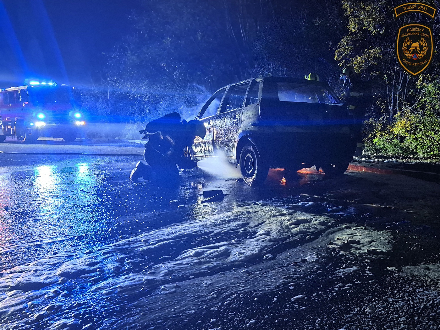Požár osobního vozidla v Napajedlech byl ohlášen na linku tísňového volání Hasičského záchranného sboru Zlínského kraje ve 21:45 hodin.