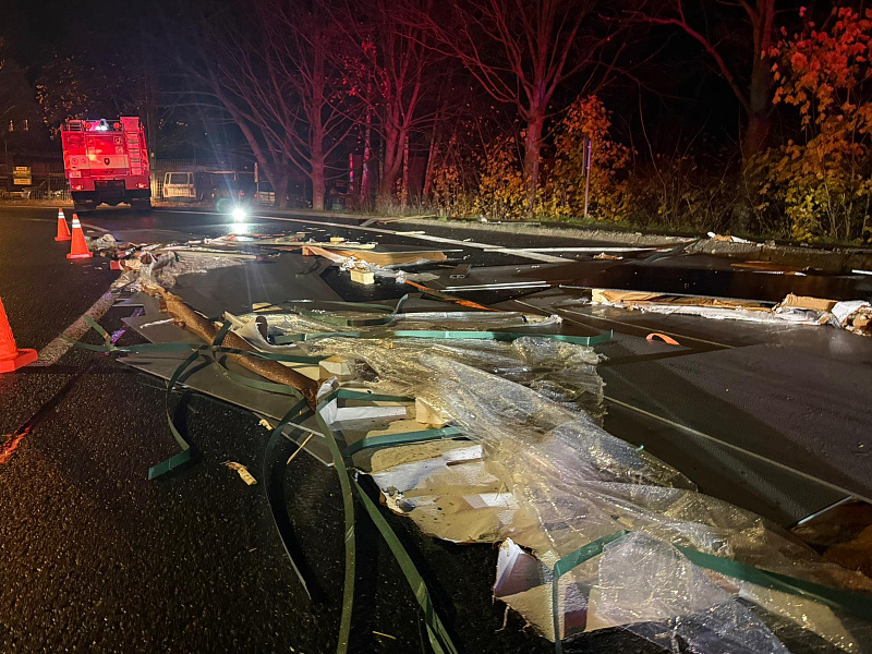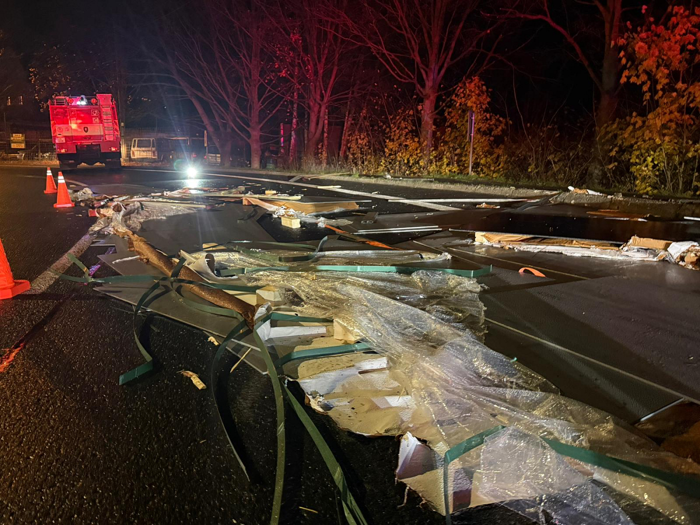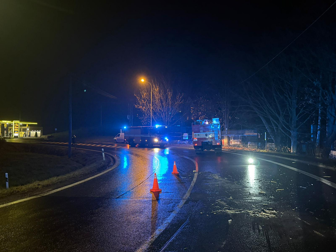 Hasiči na místě události odstraňovali z komunikace spadlý náklad z nákladního vozidla, které se však v době zásahu na místě již nenacházelo.