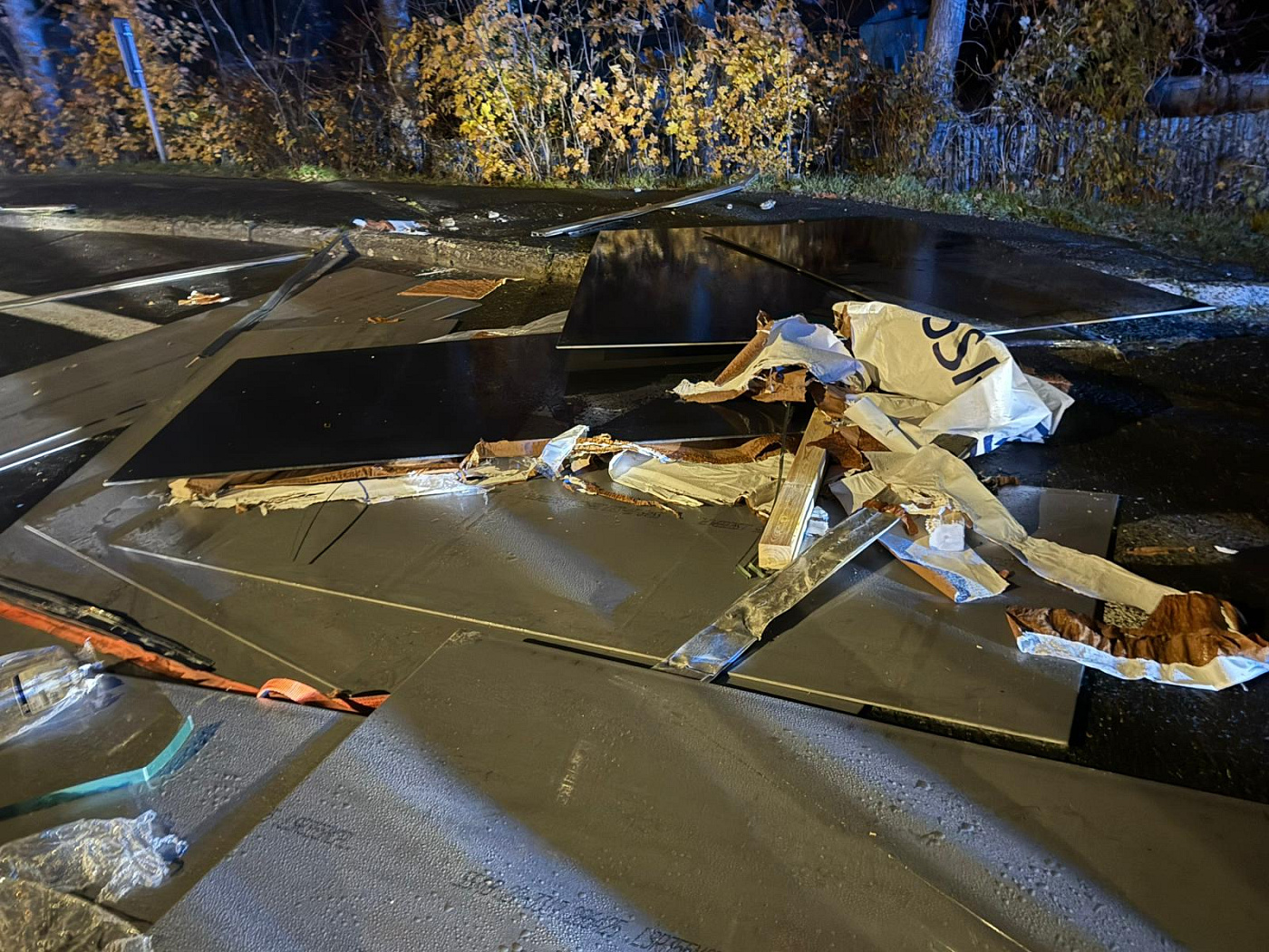 V Jílovém na Děčínsku se za jízdy z nákladního vozidla vysypal náklad plechů, řidič ho nechal na místě a ujel