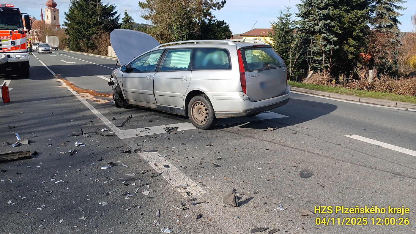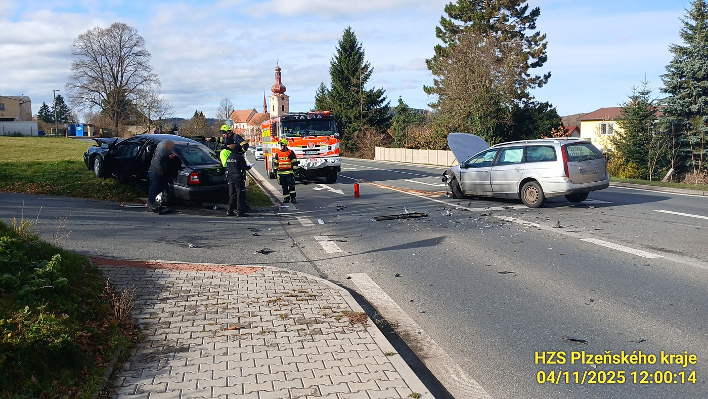 V Plzeňské ulici v Nepomuku se srazila dvě osobní auta. Dvě osoby skončily v péči záchranářů. Hasiči zajistili místo nehody a zlikvidovali uniklé provozní kapaliny.