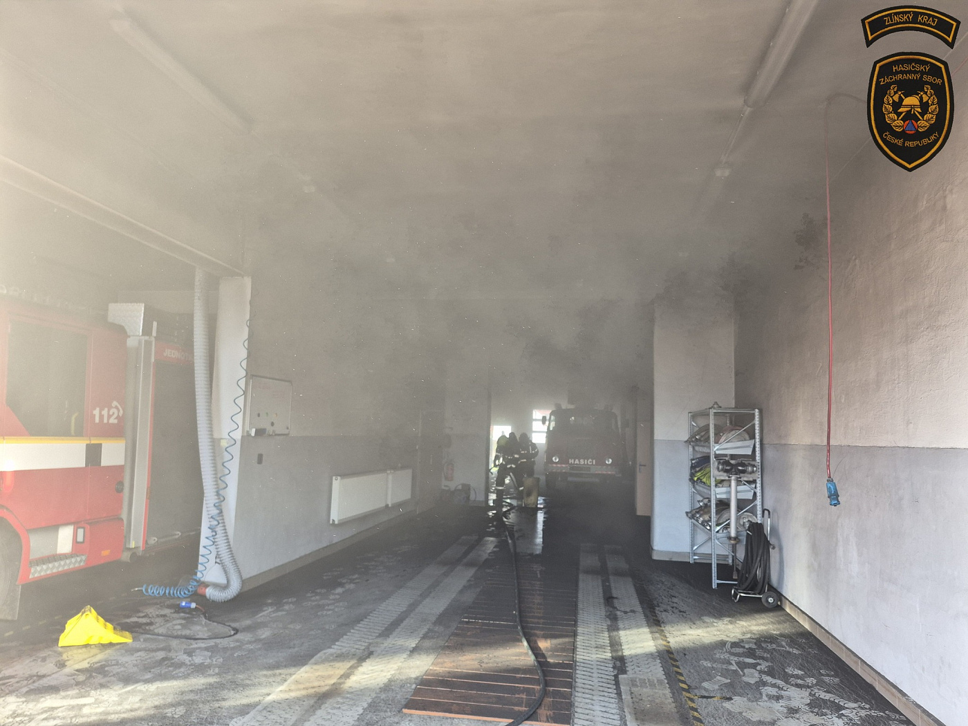 V Kunovicích hořela hasičárna, jeden z hasičů se při hašení nadýchal kouře. Příčinou byla závada na reproduktoru