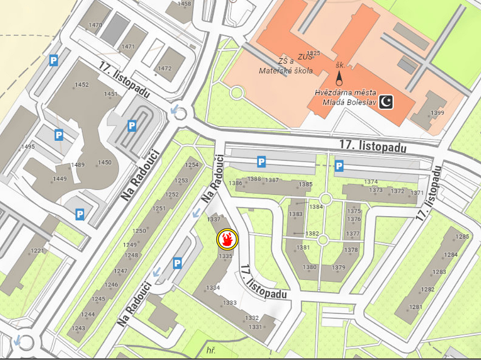 U požáru lodžie v pátém patře bytového domu zasahují hasiči v ulici 17. listopadu v Mladé Boleslavi. Plameny se rozšířily do bytové jednotky i na další lodžie.