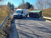 U nehody dodávky s vlekem zasahuje v obci Sebranice profesionální jednotka hasičů z Poličky. Přívěs byl převrácený na boku. Řidič převážel granulovanou močovinu o celkové hmotnosti přibližně 2000 kg. Hasiči zajistili dodávku, uniklé látky posypali sorbentem a asistovali při přeložení nákladu.