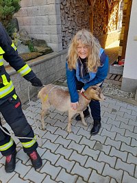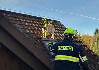 Profesionální hasiči ze stanice Liberec zachraňovali kozu ze střechy rodinného domu