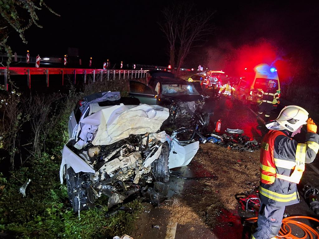 Všechny složky IZS zasahují u vážné dopravní nehody dvou osobních aut na silnici II/635 u obce Křelov-Břuchotín. Silnice je zcela uzavřena v obou směrech. Na místě je sedm zraněných osob, jedna další osoba střet nepřežila.