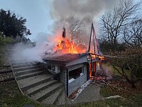 Požár rekreační chaty v Hřešicích na Kladensku likvidovalo šest jednotek hasičů