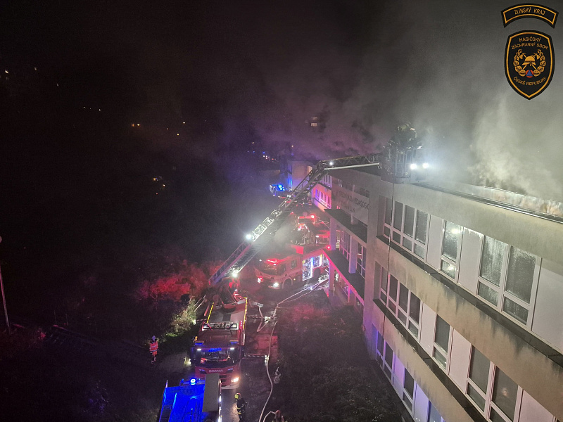 Ve Zlíně hoří střecha střední školy, byl vyhlášen III. stupeň poplachu