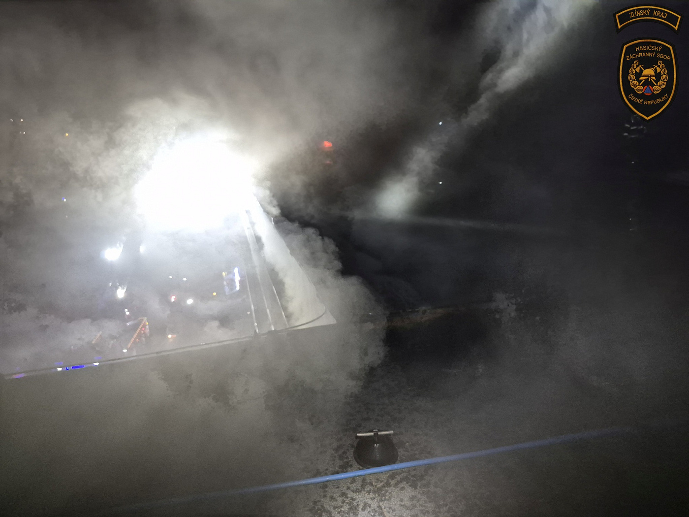 Na místo povolán taktéž dron, který snímá požářiště z výšky. Živý přenos je důležitou podporou pro velitele zásahu, kterým je krajský řídící důstojník.
