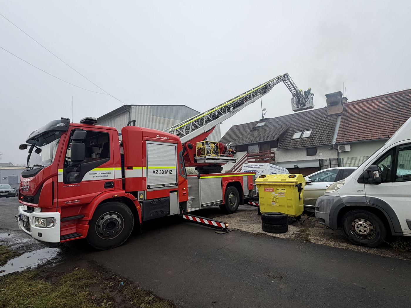 K požáru sazí v komíně vyjížděla do ulice U Farmy v Žalanech místní dobrovolná jednotka spolu s profesionály z Teplic.