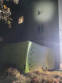 Seskoková matrace zachránila život, muž na ní vyskočil z hořícího bytu