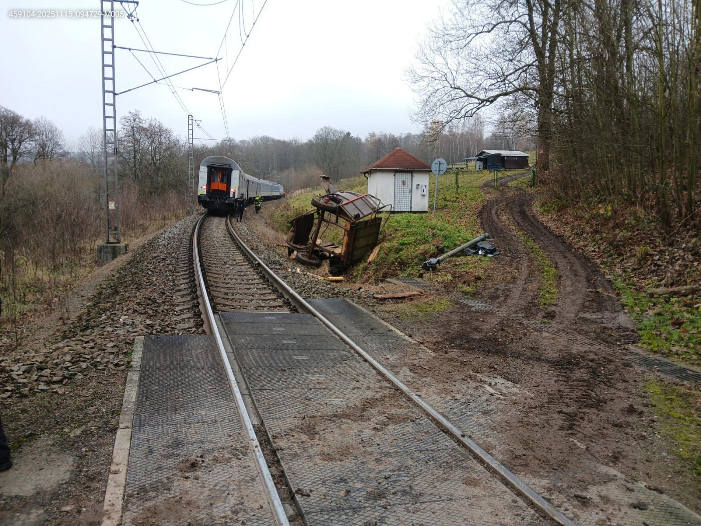 V Těchoníně došlo na železničním přejezdu ke střetnutí vlaku s přívěsem za traktor. Na místě zasahují drážní hasiči spolu s jednotkou profesionálních hasičů z Králíků.